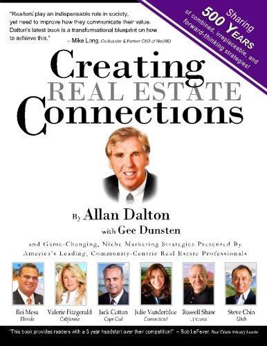 Combining over 500 years of forward-thinking Real Estate strategies from 24 co-authors, Creating Real Estate Connections' authors Allan Dalton, the former CEO of Realtor.com, and Gee Dunsten, the past president of CRS, have teamed up with a veritable “Who's Who” of prodigious Real Estate Listing/Marketing-side Superstars to produce the definitive work on what is required to exponentially increase one's listing/marketing results through proven niche and overall community marketing strategies.