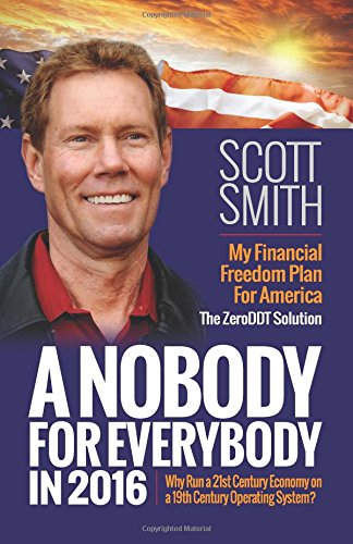 Having just finished Brad Thor's HIDDEN ORDER, which gives an excellent history of the Federal Reserve System and its creation, Scott Smith's 2016 presidential platform — A NOBODY FOR EVERYBODY IN 2016 — absolutely inspired me. Problem is, we can't even get all the states to agree whether or not Daylight Savings Time should be continued or abolished. The only hope for Scott Smith is voter dissatisfaction with a Clinton-Bush ticket in 2016. But a populist movement for ZeroDDT (Zero National Debt, Zero Deficit Spending, and Zero Income Taxes) could actually sweep Scot Smith into the White House. A guy named Adam Smith wrote WEALTH OF NATIONS. His namesake Scott Smith, who paid his dues on Wall Street and has several successful companies under his belt, wrote what I believe is the sequel to Adam Smith's tour de force. The ideas are simple enough for a low-information electorate to grok, yet well-enough developed to have the skeptical economist smacking himself in the forehead and exclaiming, "Damn! Why didn't I think of that?" Worst case, Scott Smith should at least be given Nobel consideration for his contribution to Economics. I'd dearly like to see Freakonomics gurus Dubner and Leavitt, or Wall Street icon Warren Buffett comment on ZeroDDT. I do know a "friend of a friend" and a former high-ranking Fed manager, characterized ZeroDDT as "…a great idea that will never fly." We'll see, eh?